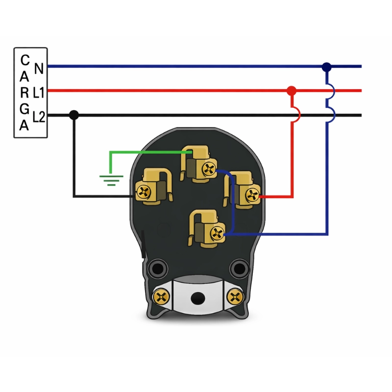 Dispositivo usado para establecer una conexión eléctrica al ser insertado en un tomacorriente. Fabricado bajo estándar NEMA 14-50P. Apropiados para la conexión en tomacorrientes especiales VETO, estándar NEMA 14-50R.